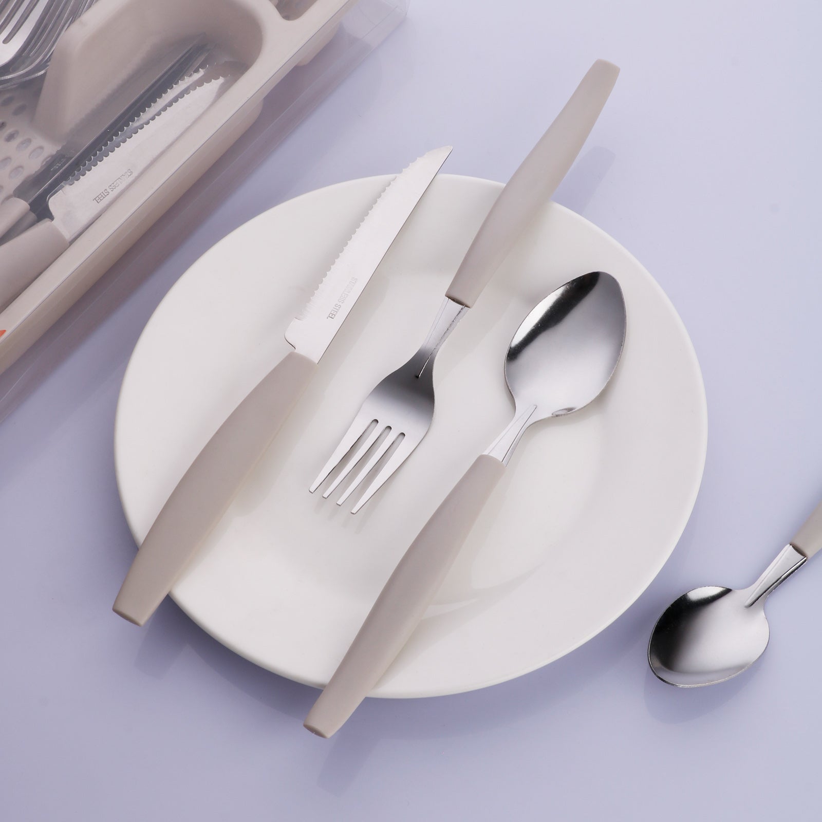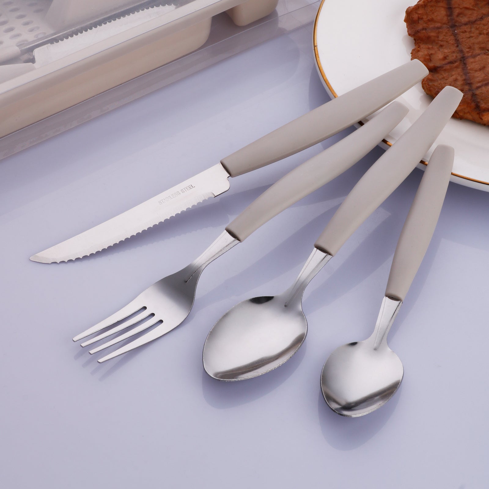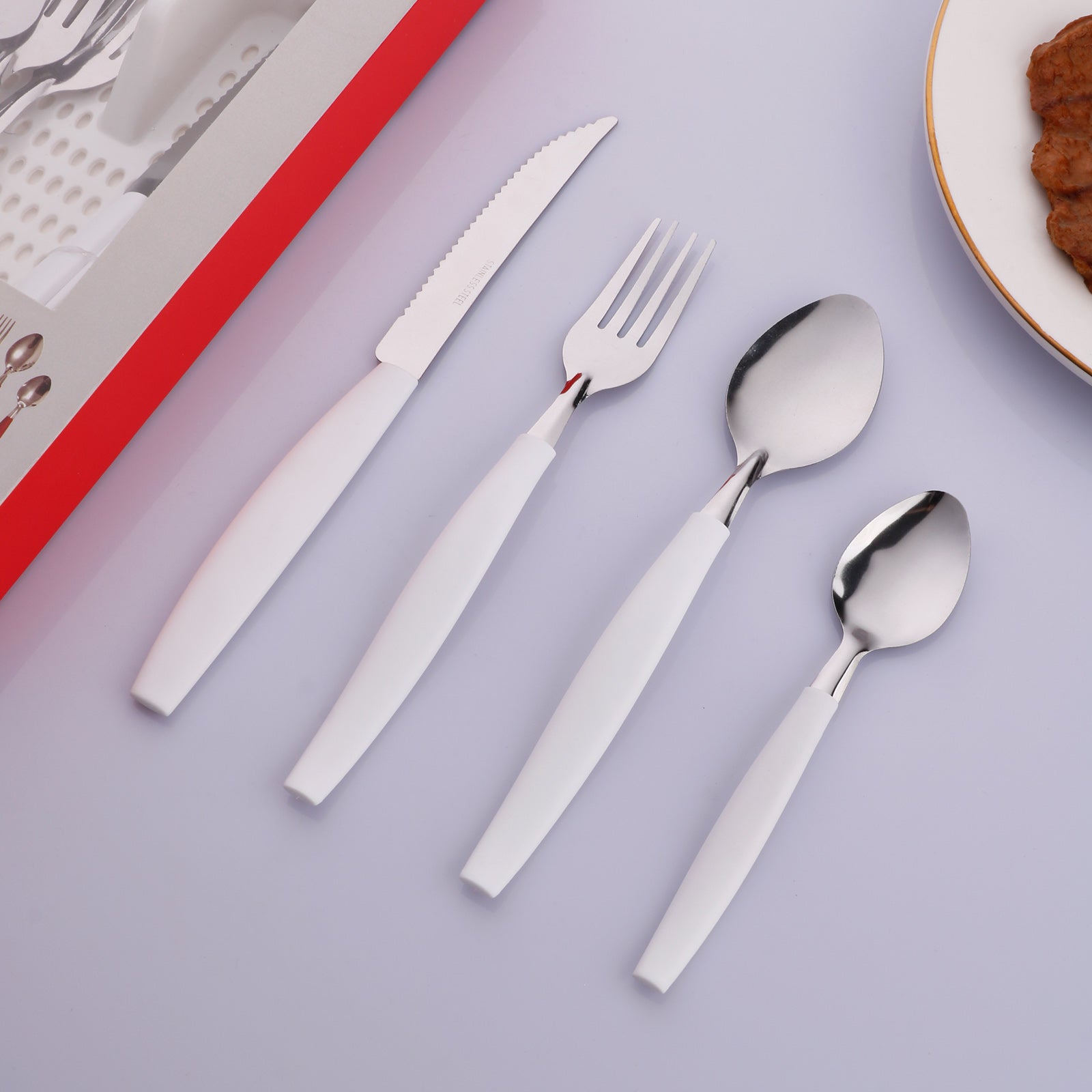 4-Piece Plastic Handle Stainless Steel Flatware Set with Comfortable Shape Handle