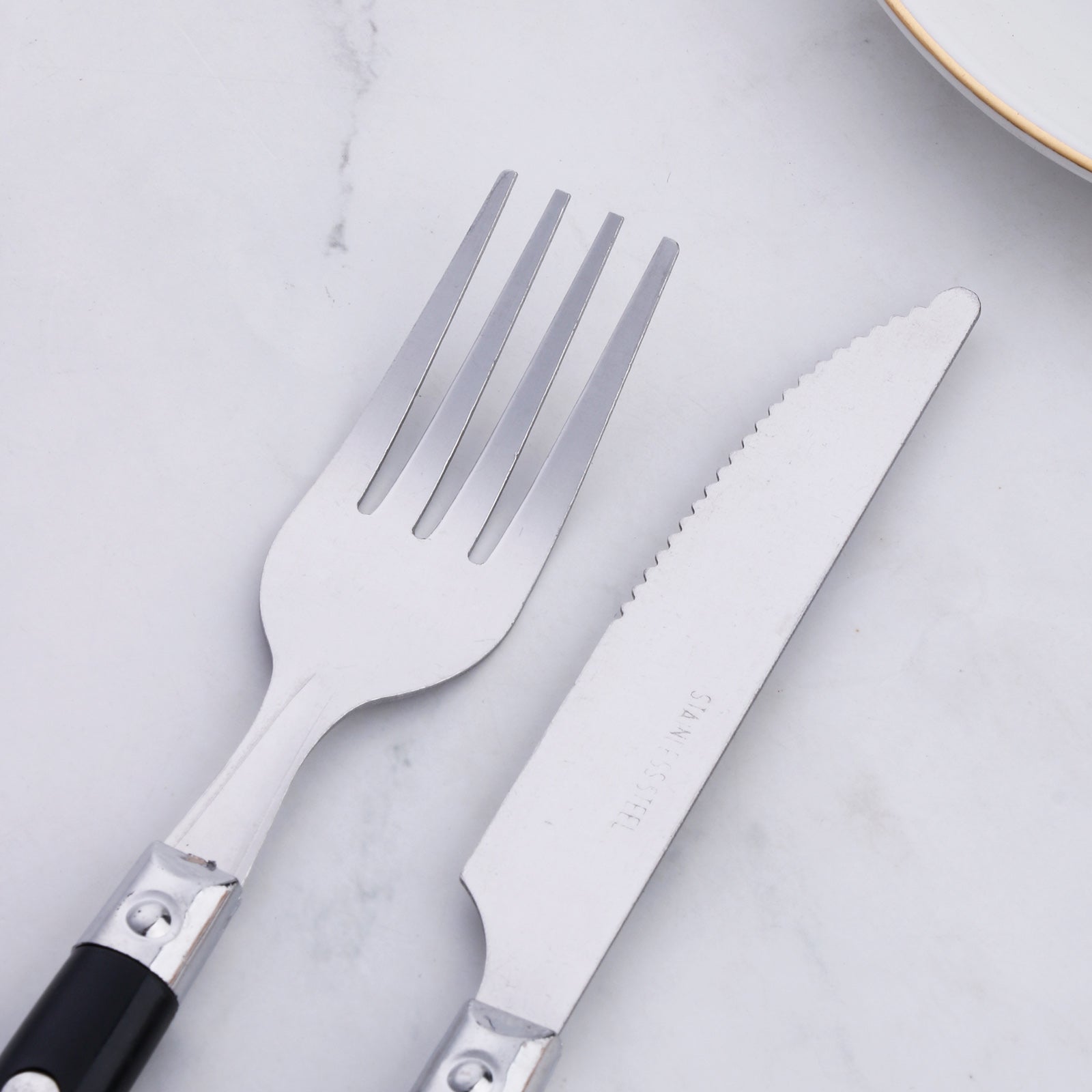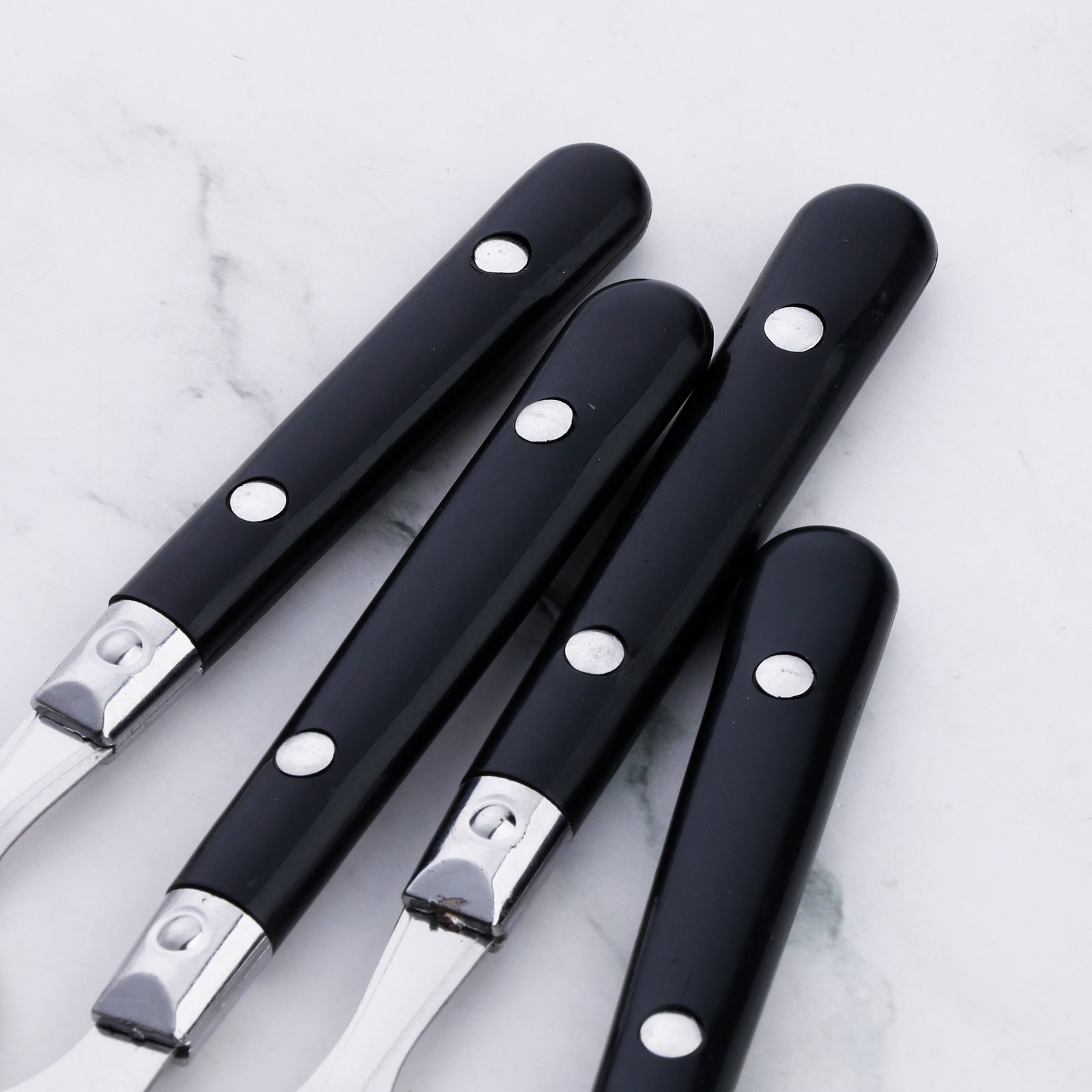 4 Pieces Black Handle Flatware Set, Durable Stainless Steel Dinner Knife, Dinner Fork, Dinner Spoon , Desset Spoon Set, for Picnic, Home Party, School Student, Easy Wash